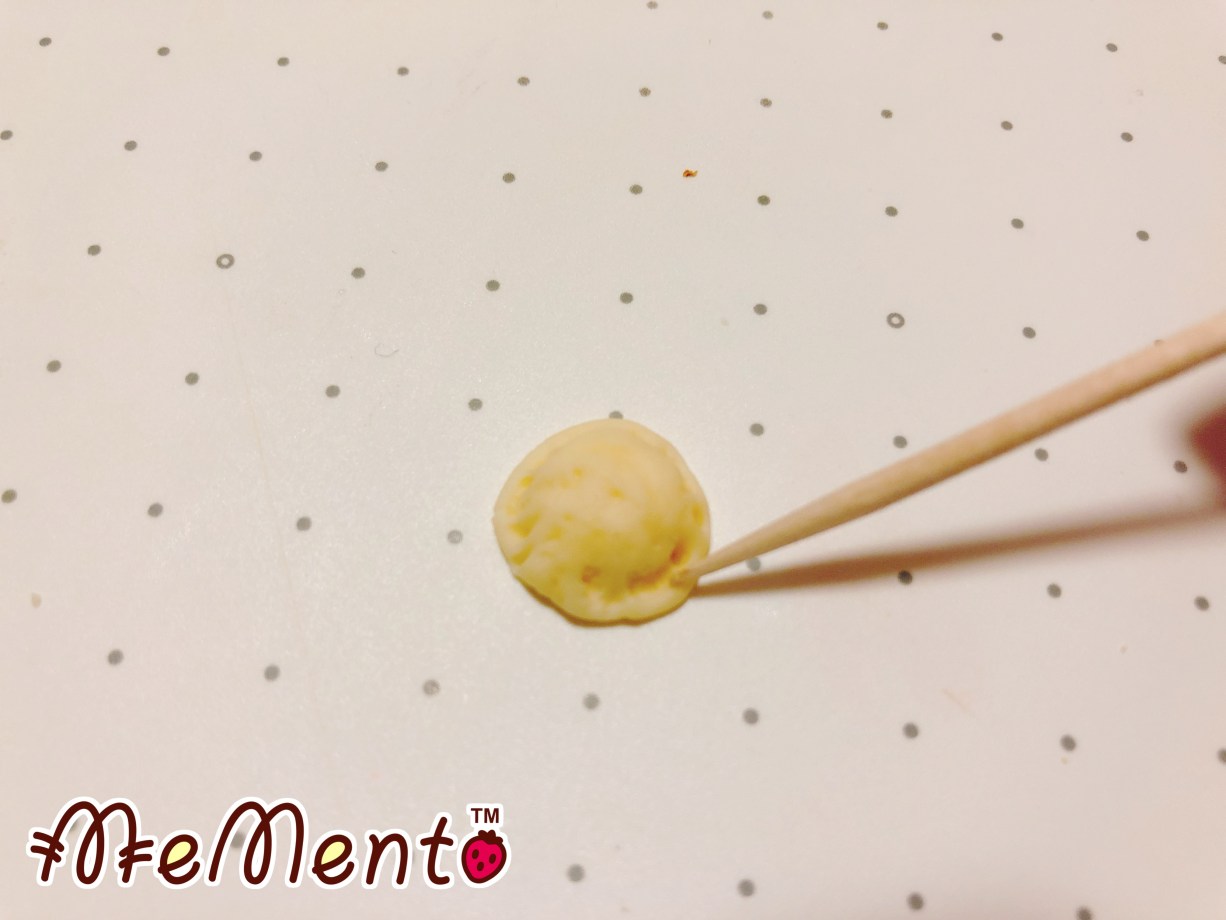 粘土を丸めたあと歯ブラシでトントン叩いてアイスの質感を出します。